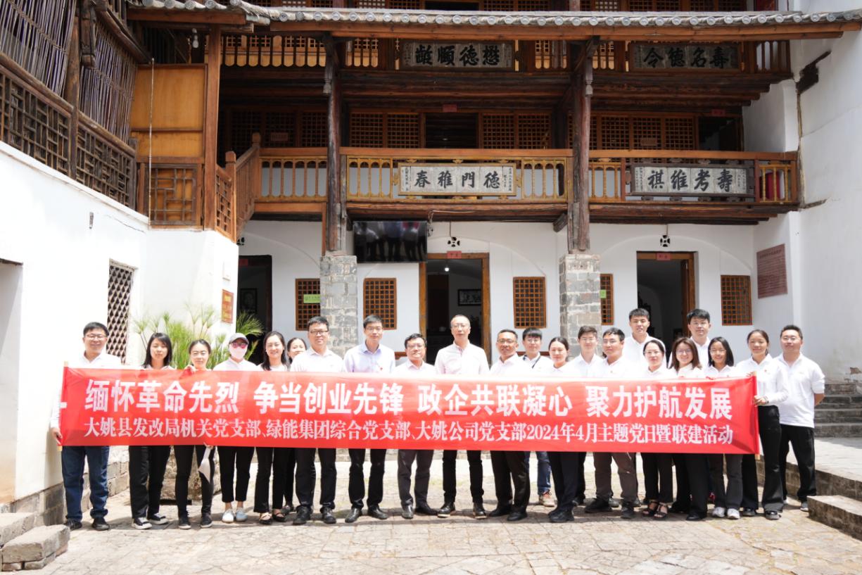 为推动年度重点任务落实落地,促进党建工作与生产经营深度融合,4月24日,绿能集团本部综合党支部全体党员及相关人员“组团”“四下基层”第一站来到大姚光伏基地项目,与大姚公司党支部、大姚县发改局机关党支部开展联建共建、党员突击队授旗宣誓等活动。绿能集团党委委员、副总经理张卫炜参加活动。