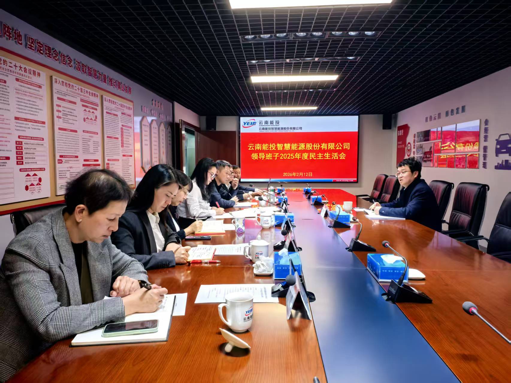 按照党中央和上级党委要求,2月12日上午,云南能投智慧能源股份有限公司召开领导班子2025年度民主生活,深入学习贯彻习近平新时代中国特色社会主义思想和党的二十届四中全会精神和省委十一届九次全会精神,围绕锲而不舍落实中央八项规定精神,推进作风建设常态化长效化,严格落实党内政治生活要求,深入开展批评和自我批评,以优良作风凝心聚力、真抓实干,奋力开创“十五五”转型发展新局面。集团党委第二督导组组长蒋治安同志到会指导。