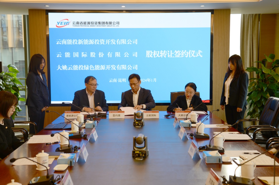 1月19日,香港公司所属云能国际股份与新能源公司、大姚公司签订股权转让协议,云能国际股份将持有大姚公司6.67%的股权,以协同合作推进企业高质量发展,为云南能源保供、绿色能源强省和产业强省建设做出新的贡献。