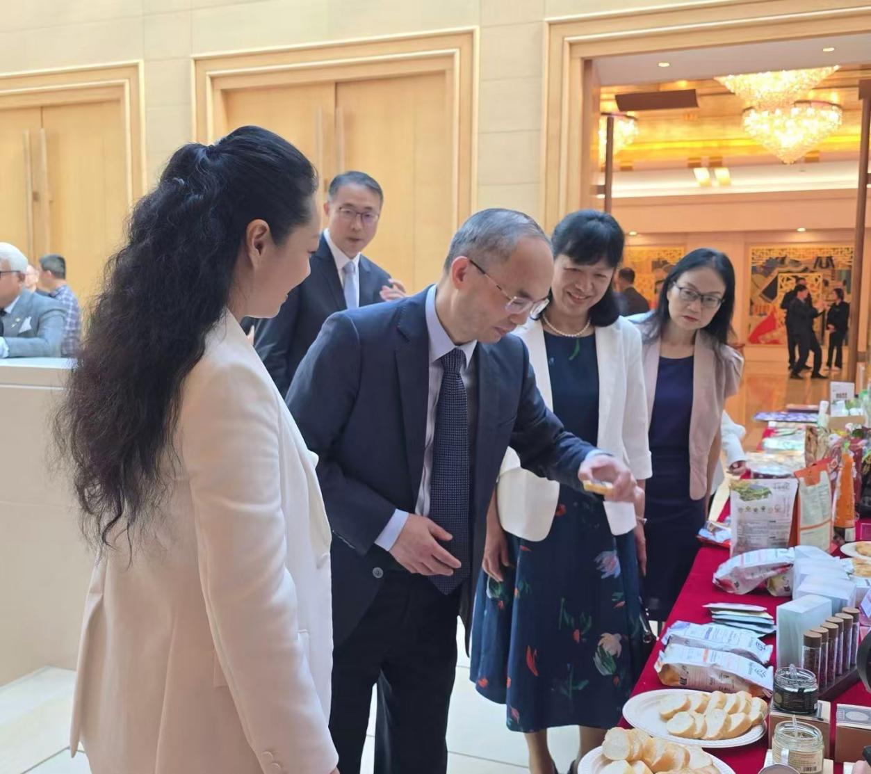 在本次活动现场,新加坡代表处还设置了“云品展台”,重点展示了松茸松露酱和云南野生菌饼干、无化学添加的自然花酵咖啡、拥有国际食品安全认证的过桥米线产品、全球最大产区临沧夏威夷果和漾濞核桃、高原泉潭孕育的珍稀贡米、天然成分山葵酱、古法与现代结合的黑糖等,优质的云南特色食品得到了新加坡商界嘉宾的广泛关注,纷纷表达有意向赴滇考察交流。