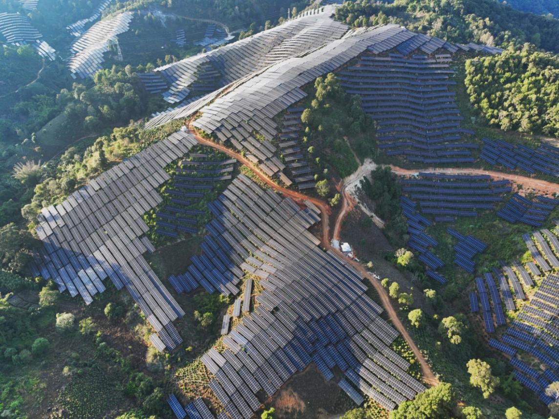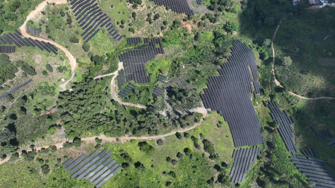 1月24日,绿能集团版纳片区南背帮20万千瓦光伏发电项目正式投产。数十万块光伏板沿着山势铺展,如同一面面巨大的“蓝色盾牌”,将炽热的阳光转化为稳定的绿色电流,照亮千家万户,守护着边疆的绿水青山。