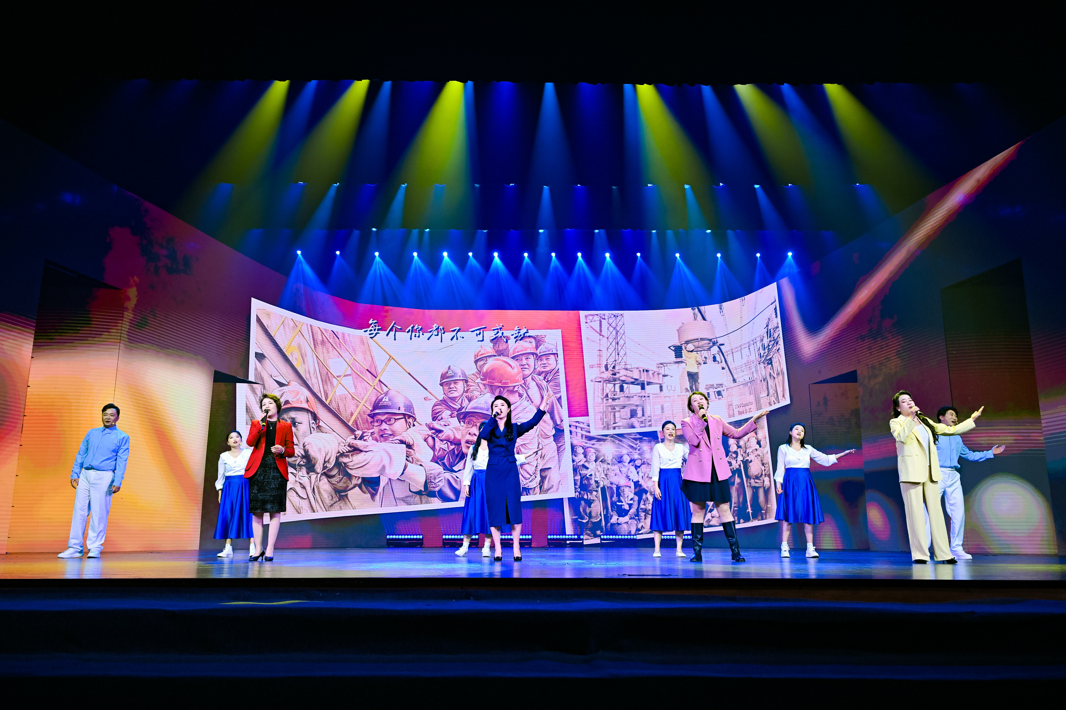 活动尾声,全体职工演员与台下观众共同唱响大合唱《再一次出发》,歌声铿锵有力,气势恢宏,共同展望“十五五”崭新征程,表达了云能人联心携手、全力奔赴未来的坚定信心。