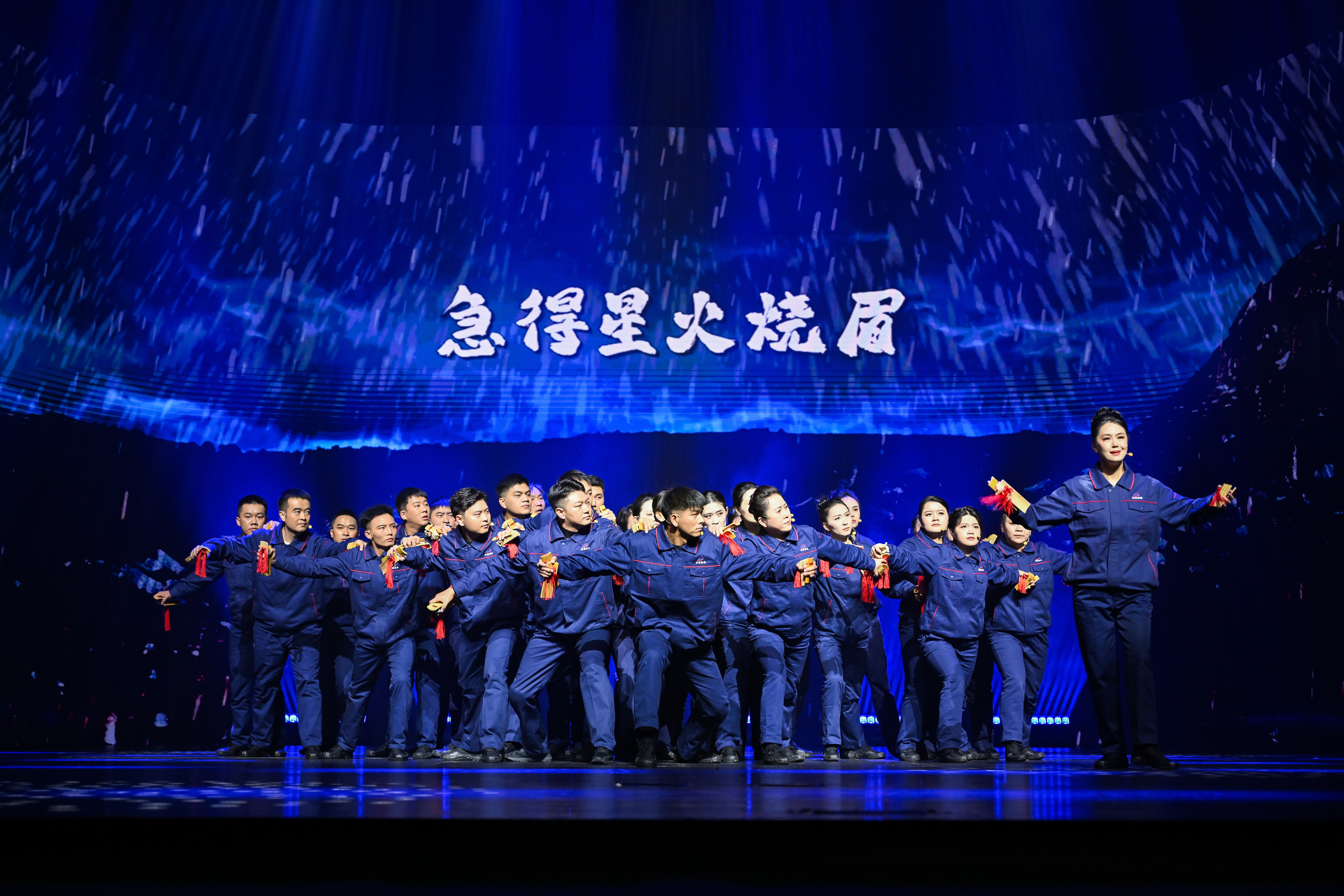 情景舞蹈《我们的63天》再现了大姚储能项目从蓝图到并网发电,仅历时63天的奋斗历程,讲述了建设者们以聚沙成塔的韧劲,打造百万级“风光储一体化”基地的幕后故事。